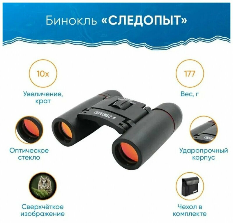 Бинокль туристический 10х22 "следопыт", черный, 65*44*90 мм, 177 гр., в чехле / Бинокль театральный / Бинокль компактный