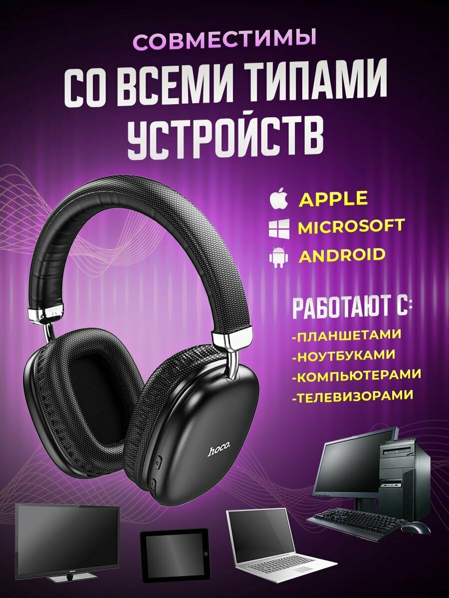 Наушники накладные hoco w35 беспроводные bluetooth (блютуз) хоко черный