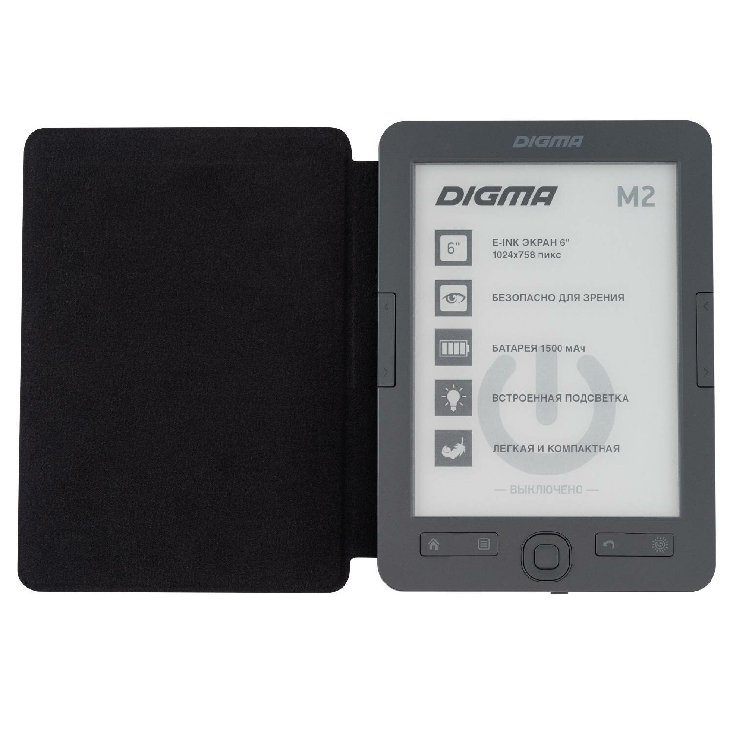 Электронная книга Digma M2 6" E-ink обложка, подсветка экрана