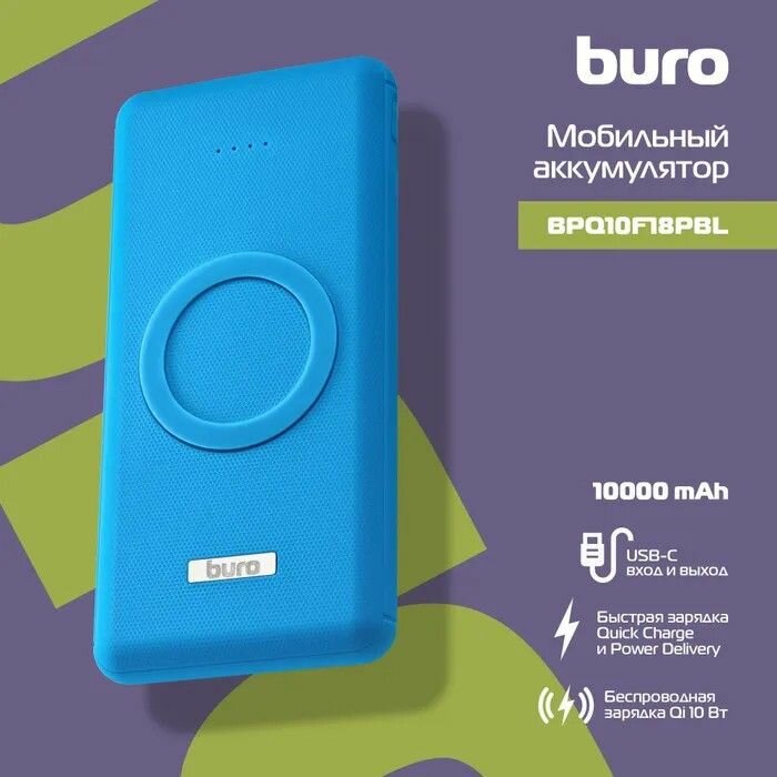 Мобильный аккумулятор Buro Bpq10f 10000mAh 3A QC PD беспроводная зарядка синий (bpq10f18pbl) Bpq10f1 .