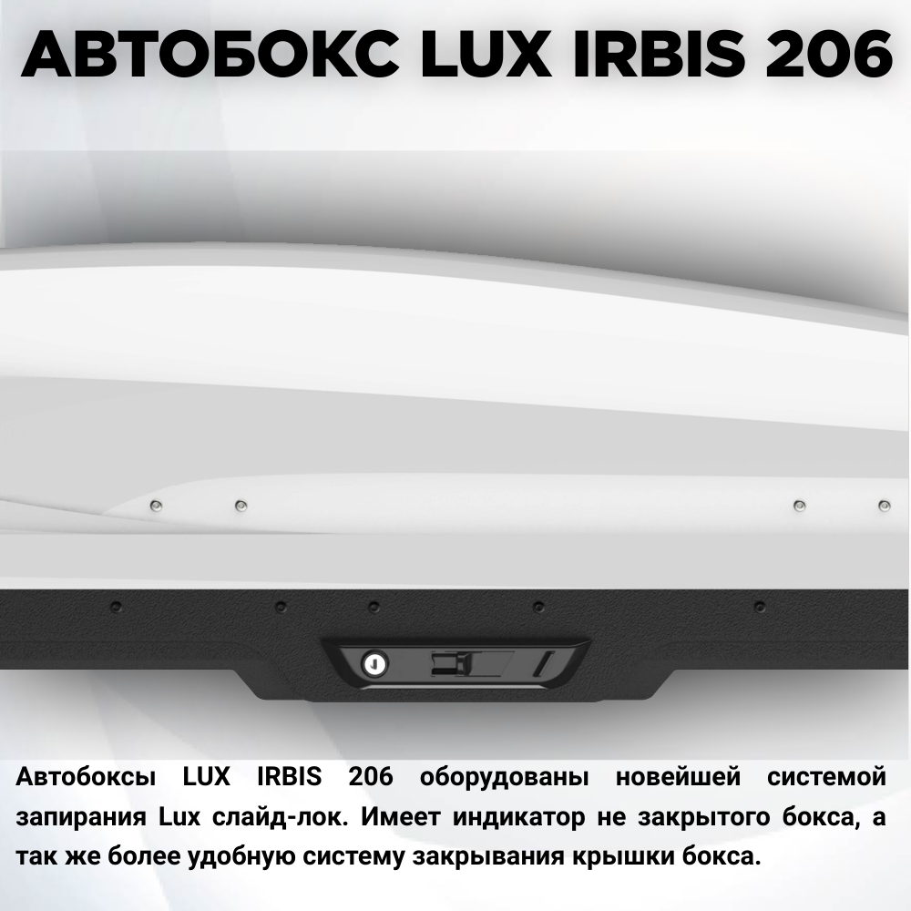 Автобокс на крышу автомобиля LUX IRBIS 206 (Люкс Ирбис 206), черный матовый, 470 литров, с двусторонним открытием, 2060х750х360 мм. (арт. 793488)