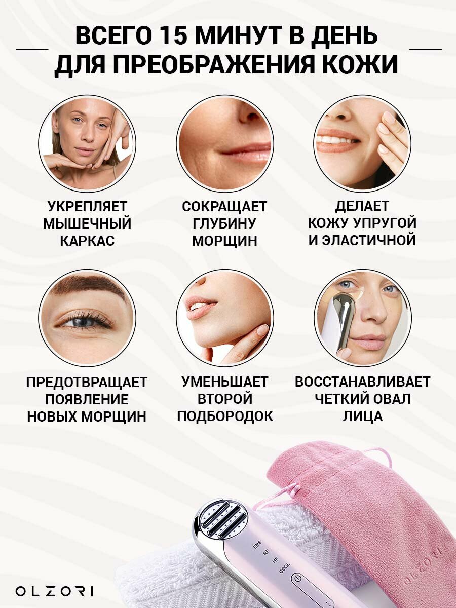 симпатичный, удобный в использовании, есть 4 режима, к емс кожа очень чувствительна, использую на минимуме, остальные на максимуме. кожа выглядит более ухожено, нравится больше всего rf лифтинг и cool. от глубоких морщин не избавит, конечно, но образование других замедлит, думаю, при ежедневном использовании