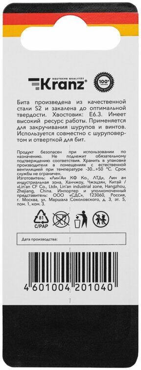 Шестигранная бита для шуруповерта KRANZ KR-92-0421-1