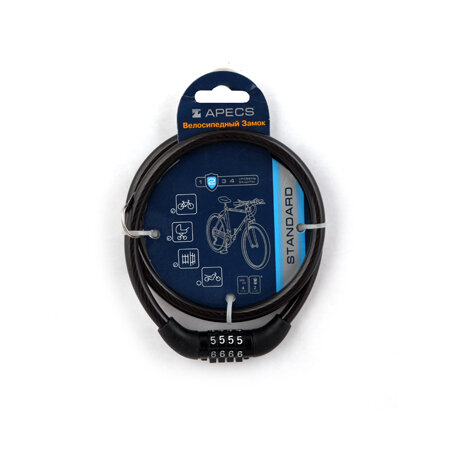 Замок велосипедный тросовый Apecs PD-82-65 кодовый, 65 см