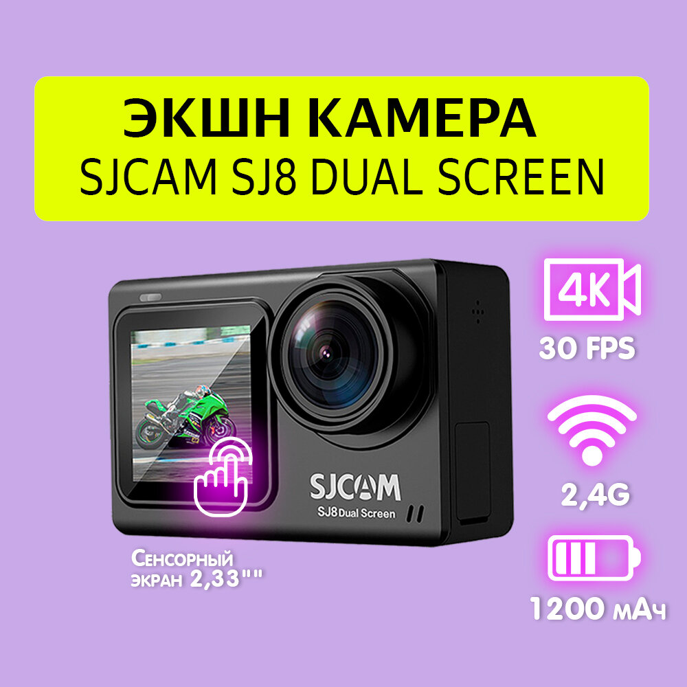Экшн-камера SJCAM SJ8 DUAL-SCREEN, 12МП, 3840x2160, 1200 мА·ч, черный