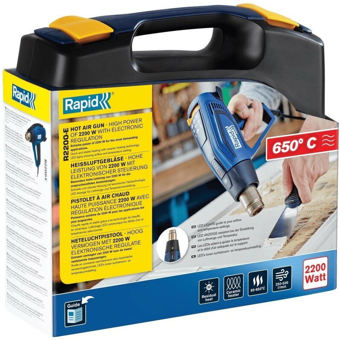 Фен строительный RAPID 500134, 2200 Вт, регулировка температуры: 60-650 °C, расход воздуха: 250-500 л/мин, светодиодная индикация нагрева, 500134