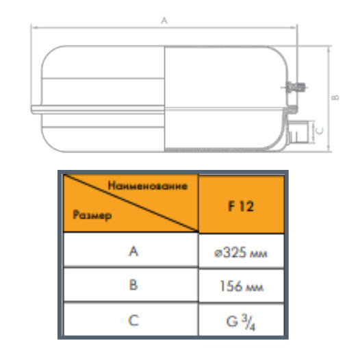 Расширительный мембранный бак 12 F, 3/4"НР, -10-110°С, 3 бар, Джилекс 7712