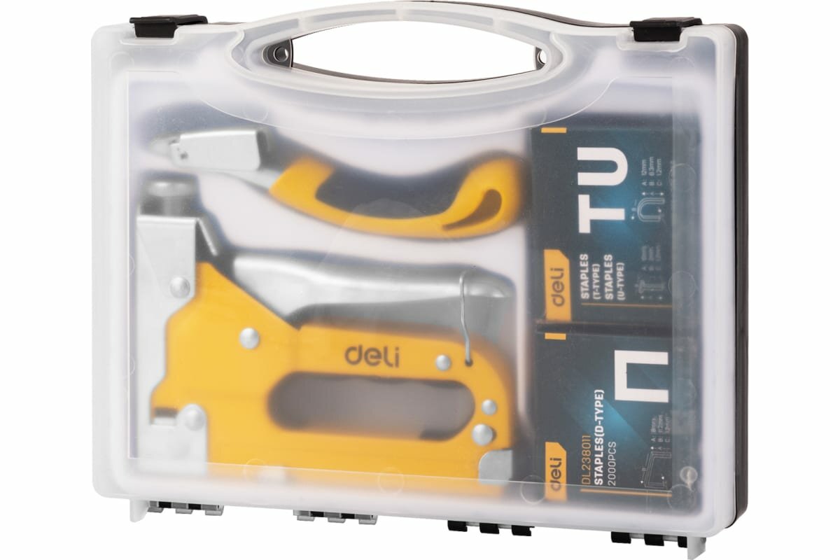 Степлер мебельный Deli DL238105 с набором скоб + антистеплер (2000шт D-тип, 2000шт Т-тип, 2000шт U-тип) (11608534)