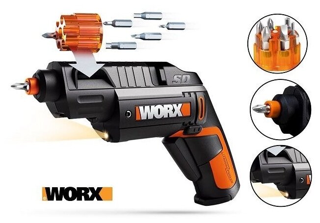 Отвертка аккумуляторная WORX WX255 SD Slide Driver, 4В, ЗУ, набор бит (6 шт)