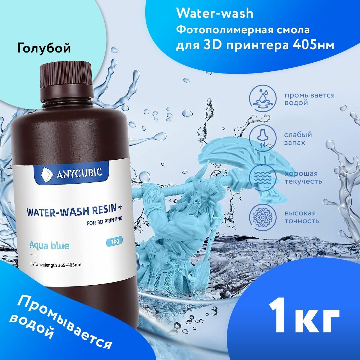 Фотополимерная смола Вода смываемая Anycubic Water-Wash Resin UV для 3Д принтеров LCD DLP 405нм , Голубая (Blue) , 1 литр