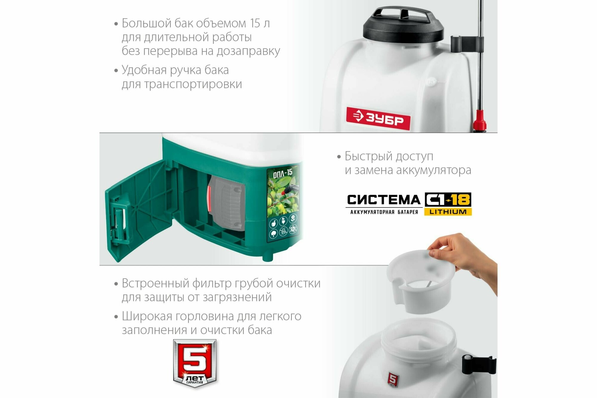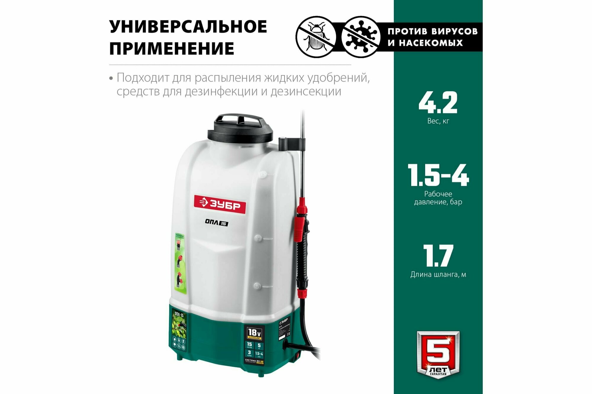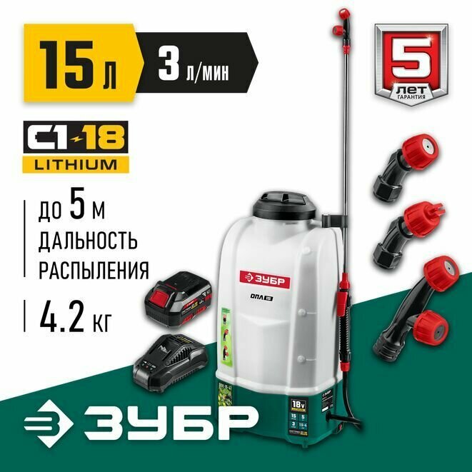 Опрыскиватель аккумуляторный 15 л бак, 1 АКБ (4А/ч), 18 В, Li-Ion ЗУБР интересное: