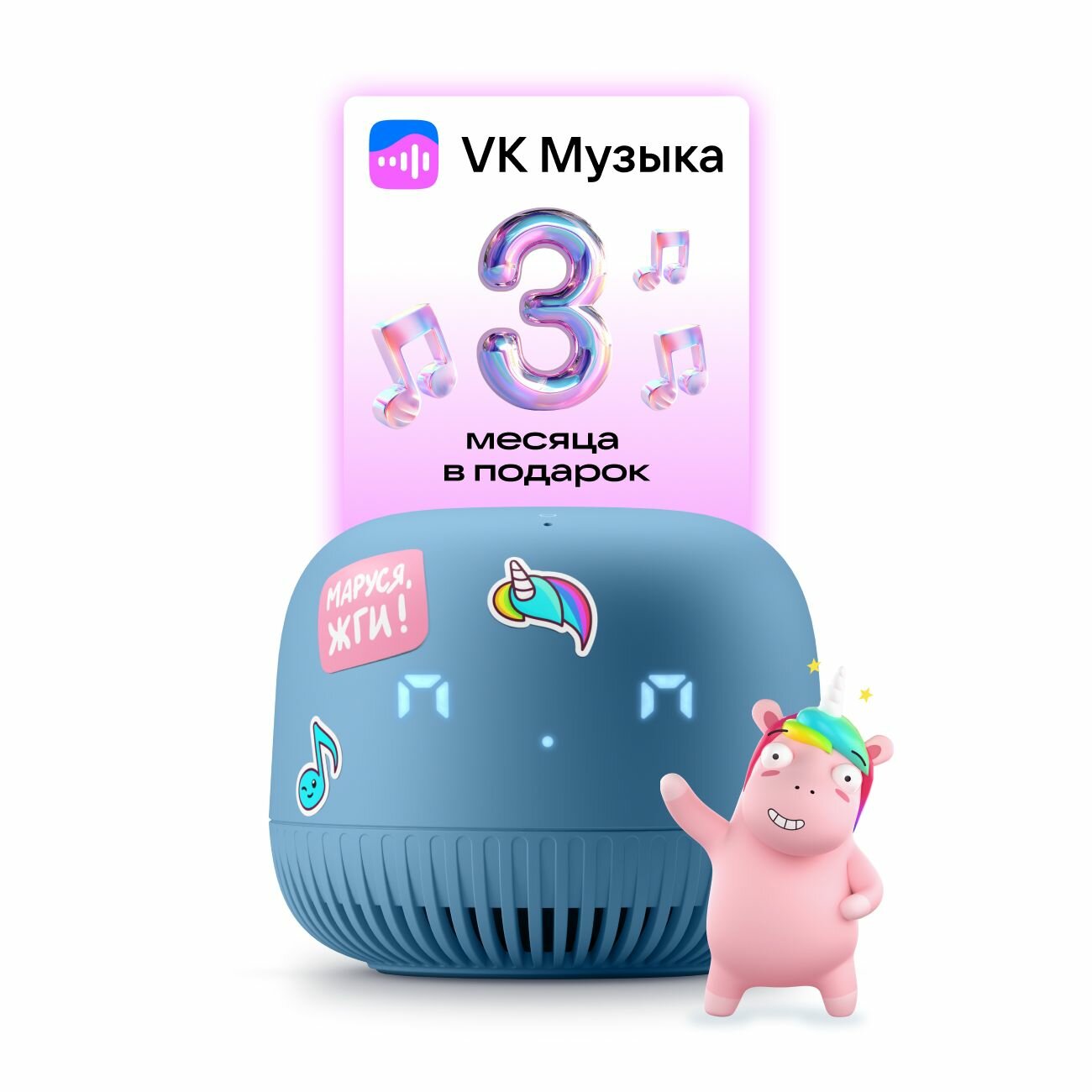 Умная колонка Маруся мини, VK Капсула Нео (с часами) и наклейками цвет синий, 3 месяца музыки VK + Wink в подарок