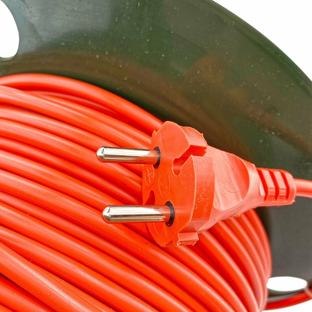 Удлинитель силовой на катушке GLANZEN 50м без зазем. 4 гнезда ПВС 2х1 мм ЕВ-50-003 для газонокосилки и триммера