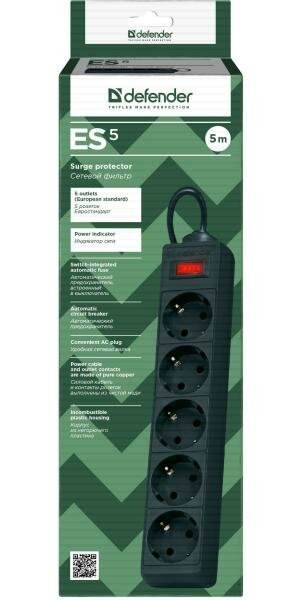 Купить Сетевой фильтр Defender ES 99486 5.0 m Bck 5 розеток, черный