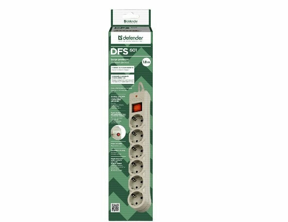 Сетевой фильтр Defender dfs-601 (1.8м) ( 6 розеток )