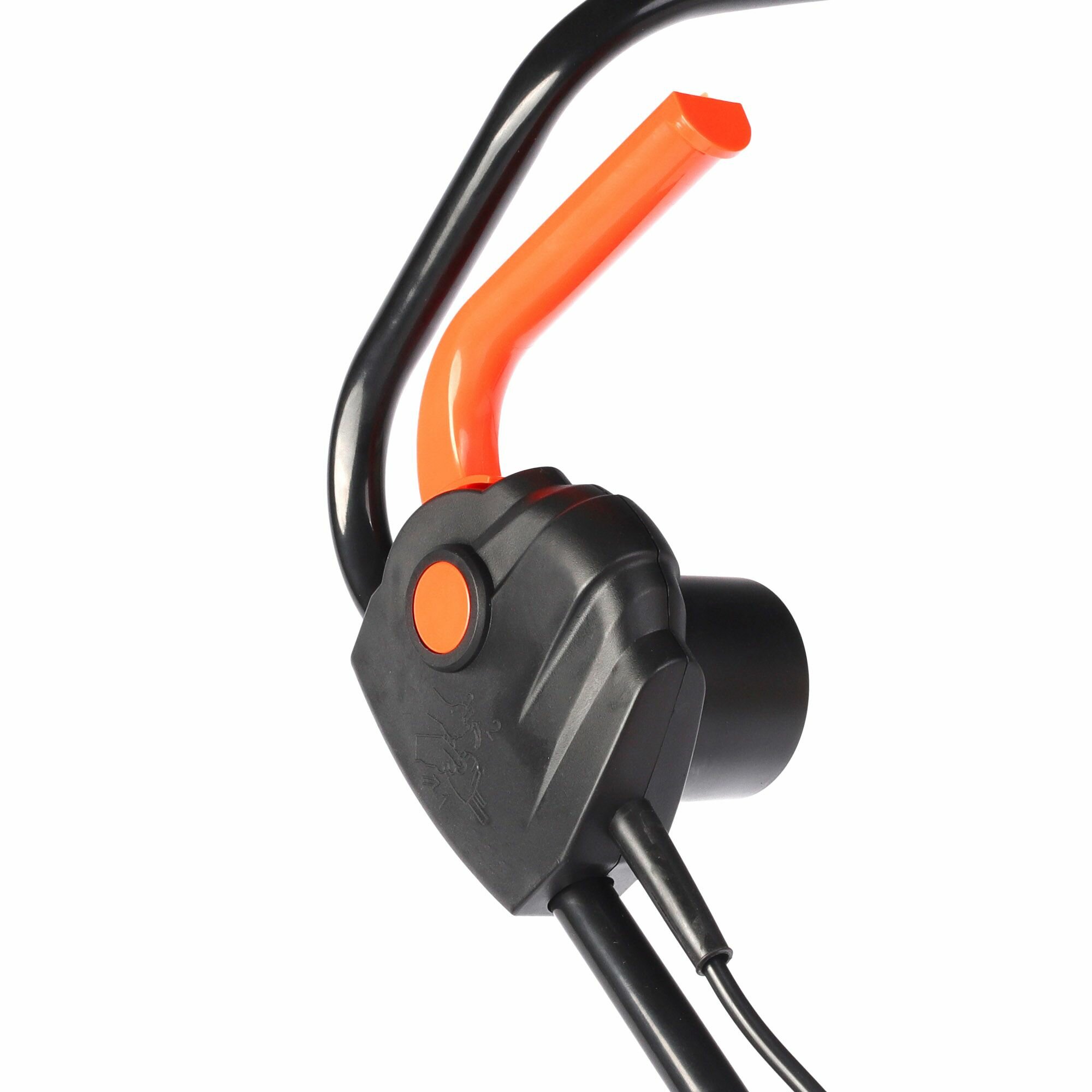 | Плюсы: | Мощность 1,4 кат. Небольшой вес.Можно регулировать высоту скоса. Мало шума. |