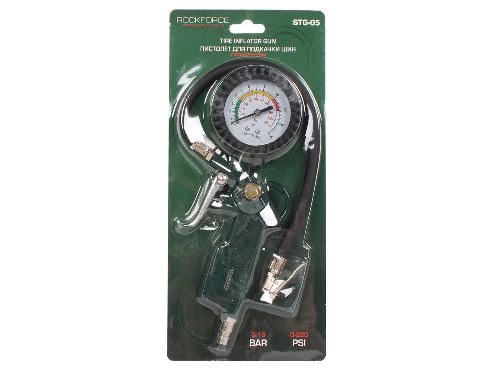 Пистолет RF-STG-05 для подкачки шин с аналоговым манометром и шлангом (0-16Bar), в блистере ROCKFORCE