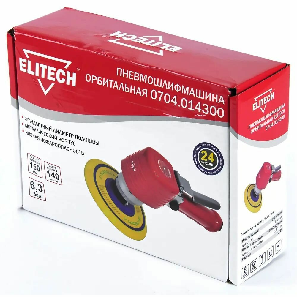 Пневмошлифмашина орбитальная Elitech 0704.014300, ф150мм, 140л/мин, 6.3бар (арт. 186353)