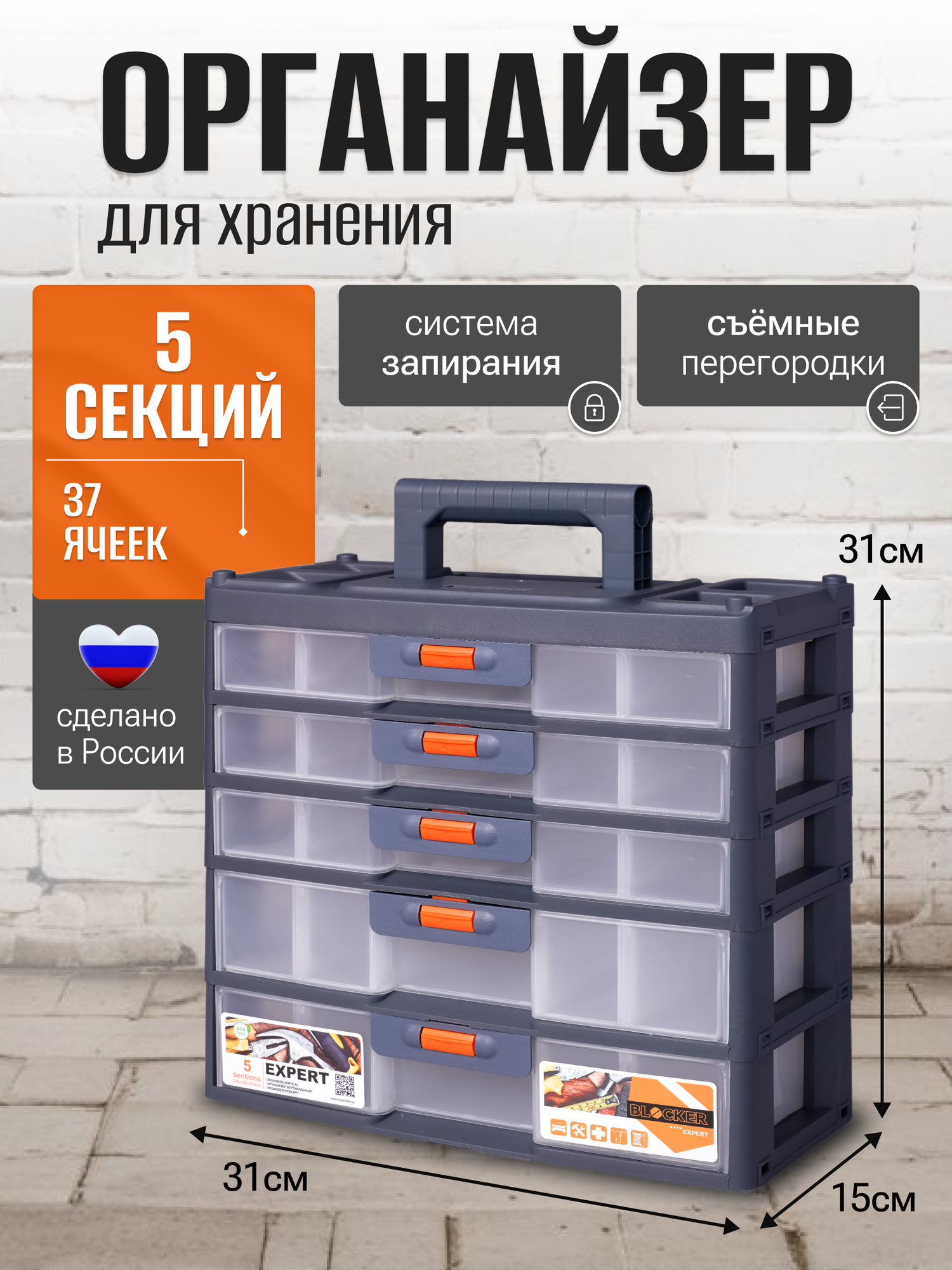 Ящик с органайзером BLOCKER Expert BR3798, 31x15x31 см, серо-свинцовый/оранжевый