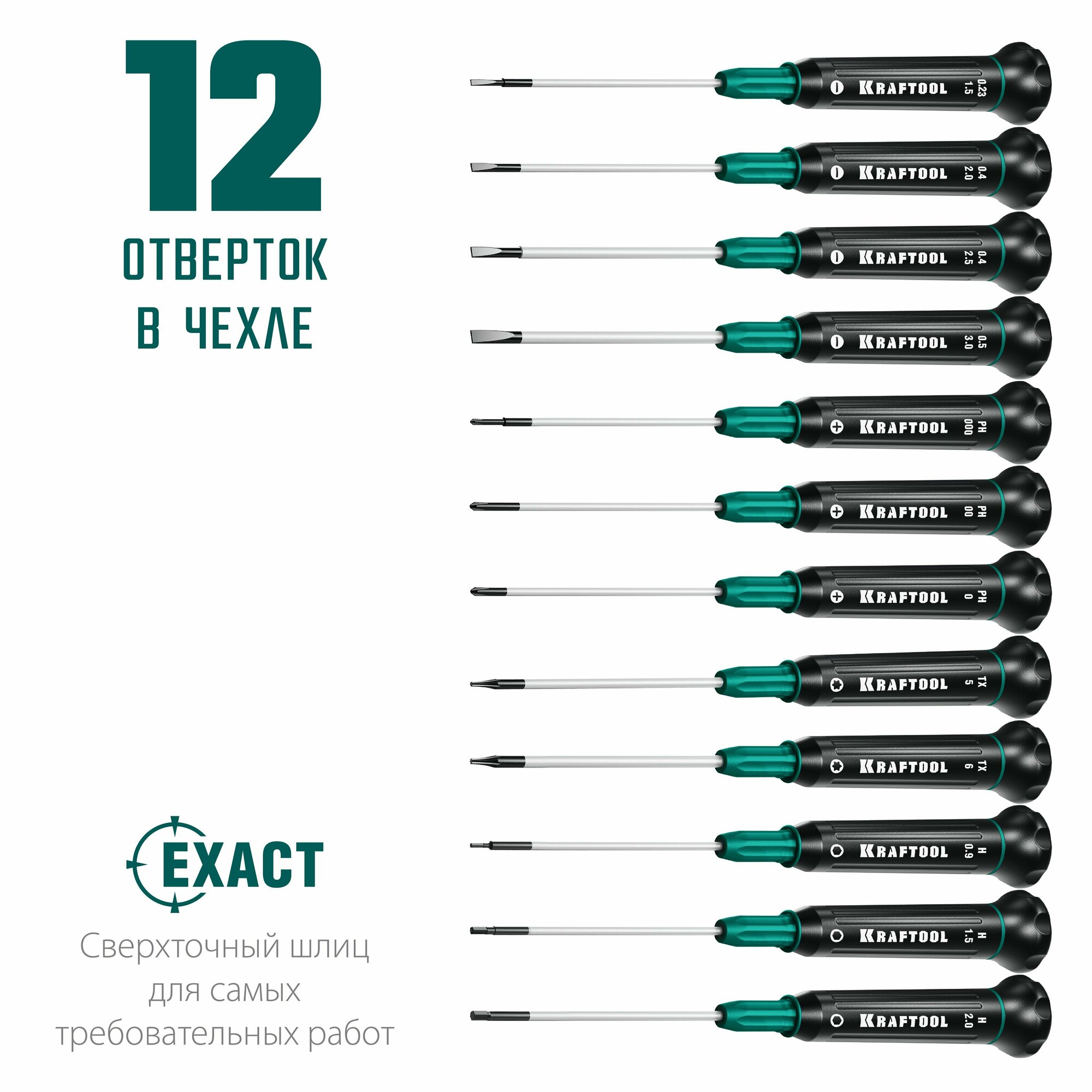 Набор отверток для точных работ KRAFTOOL Precision-12, 12 предм. (арт 25689)