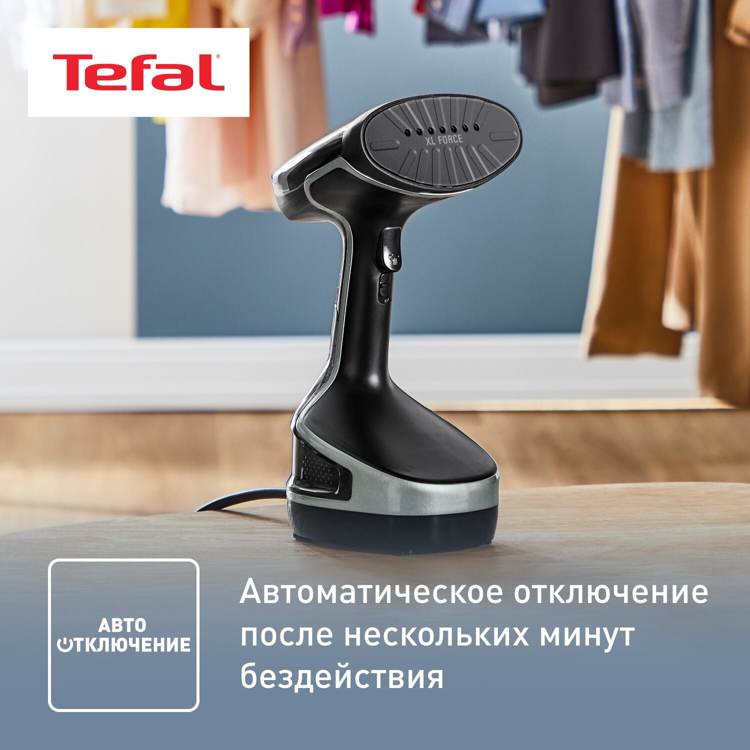 Ручной отпариватель Tefal Access Steam Force DT8270E1 черный/серый с регулировкой подачи пара, с насадкой для деликатных тканей, 2000 Вт, паровой удар 90 г/мин, автоотключение, электронное управление