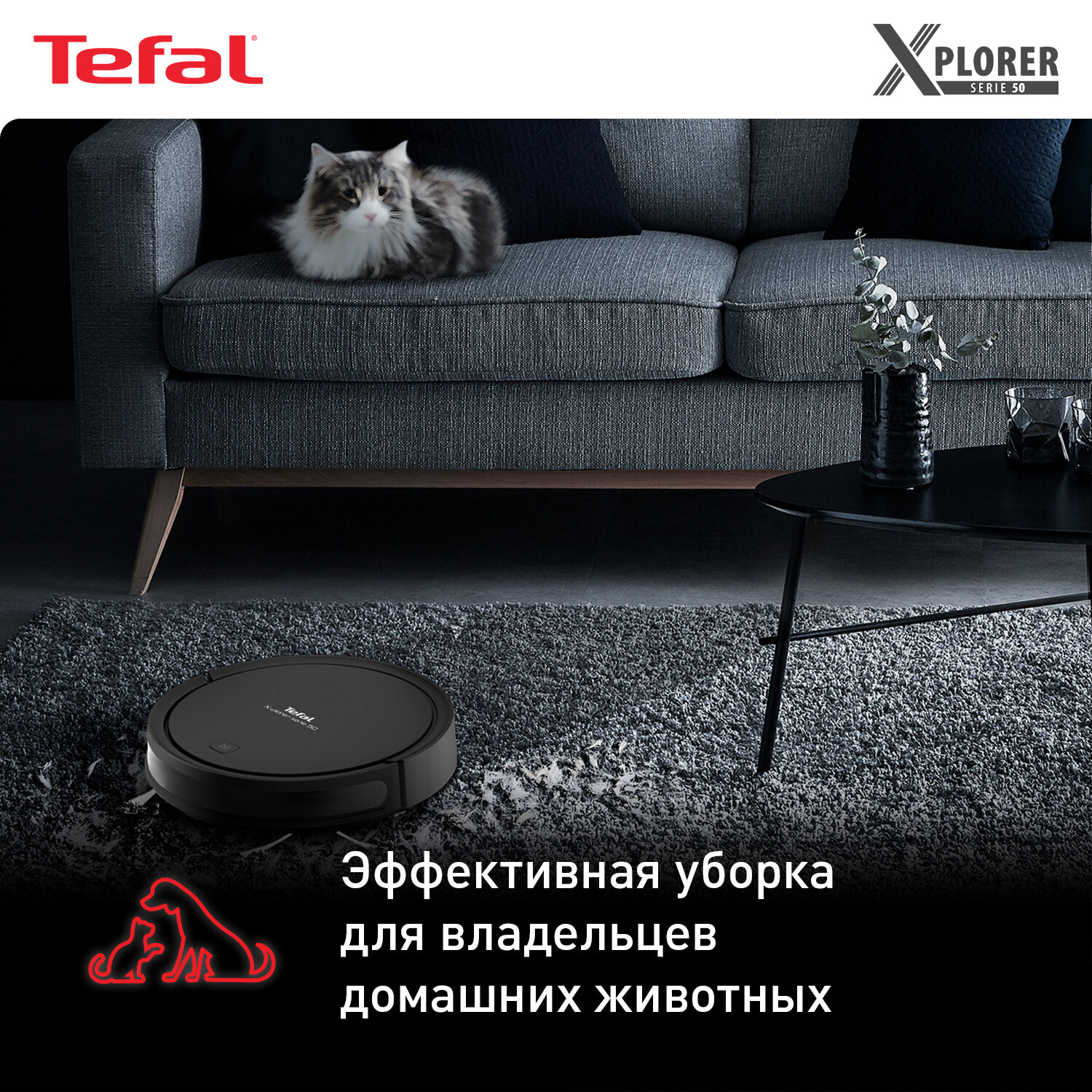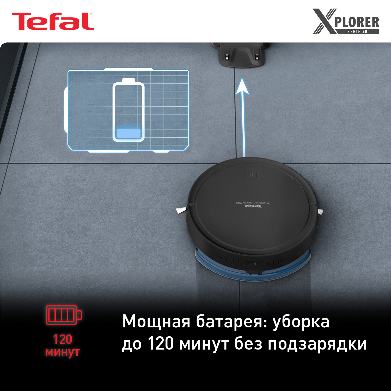 Робот-пылесос 4в1 Tefal X-plorer Serie 50 RG7365WH работает с Алисой, с сухой и влажной уборкой до 2 ч, черный