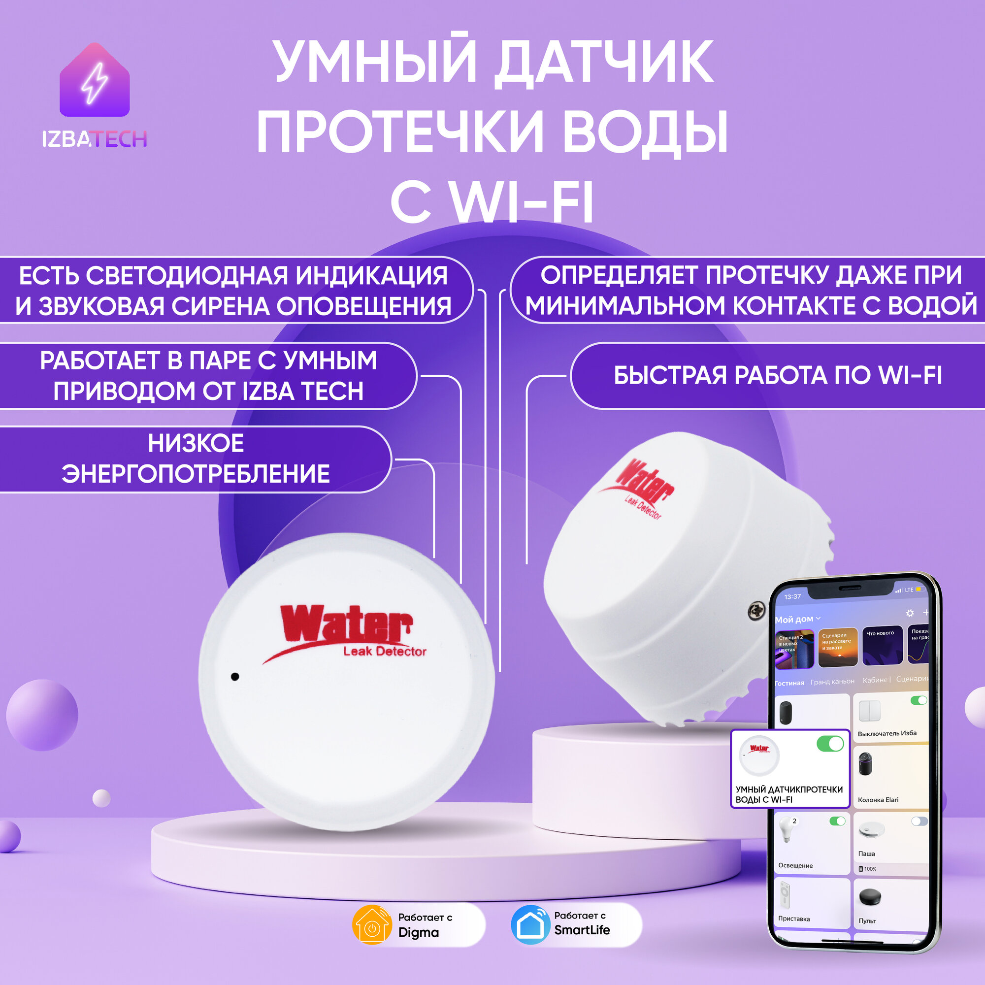 | Экосистема | Amazon Alexa / DIGMA SmartLife / Google Home / Tuya Smart / Алиса |