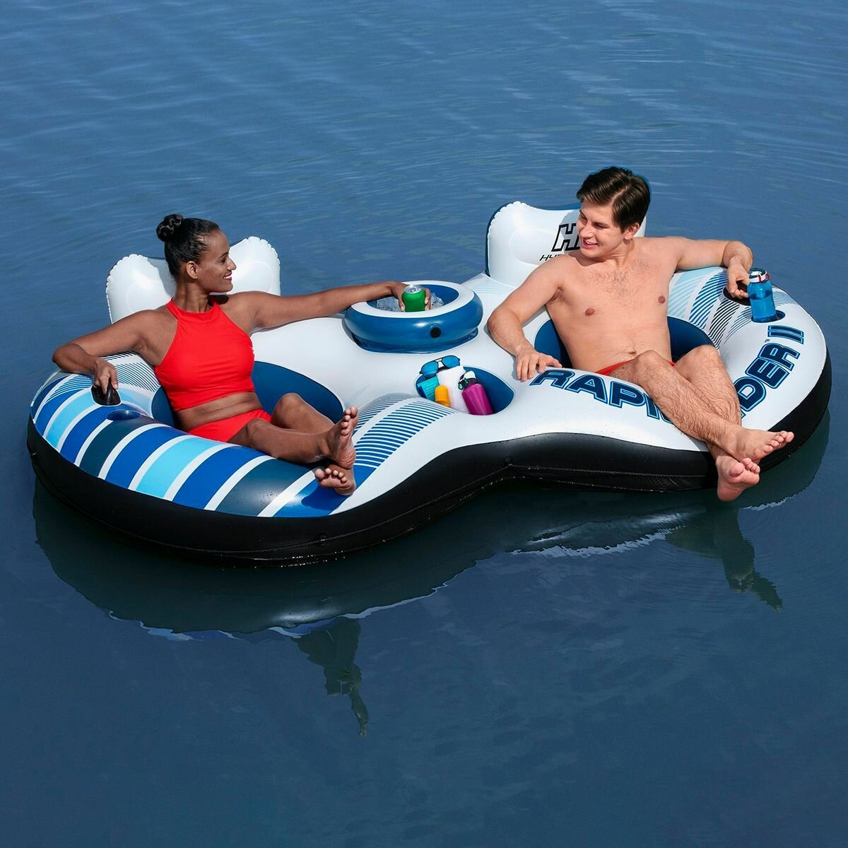 Bestway Надувное круг-кресло Rapid Rider 240*122 см двухместное с баром, голубое 43113