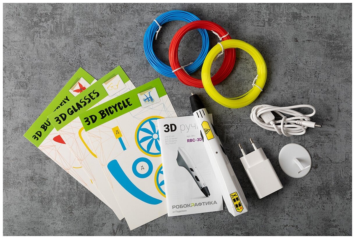 3D ручка "Поделкин" "Робокрафтика" RBC-3D-01 белая c набором PLA пластика, подставкой, шаблонами интересное: