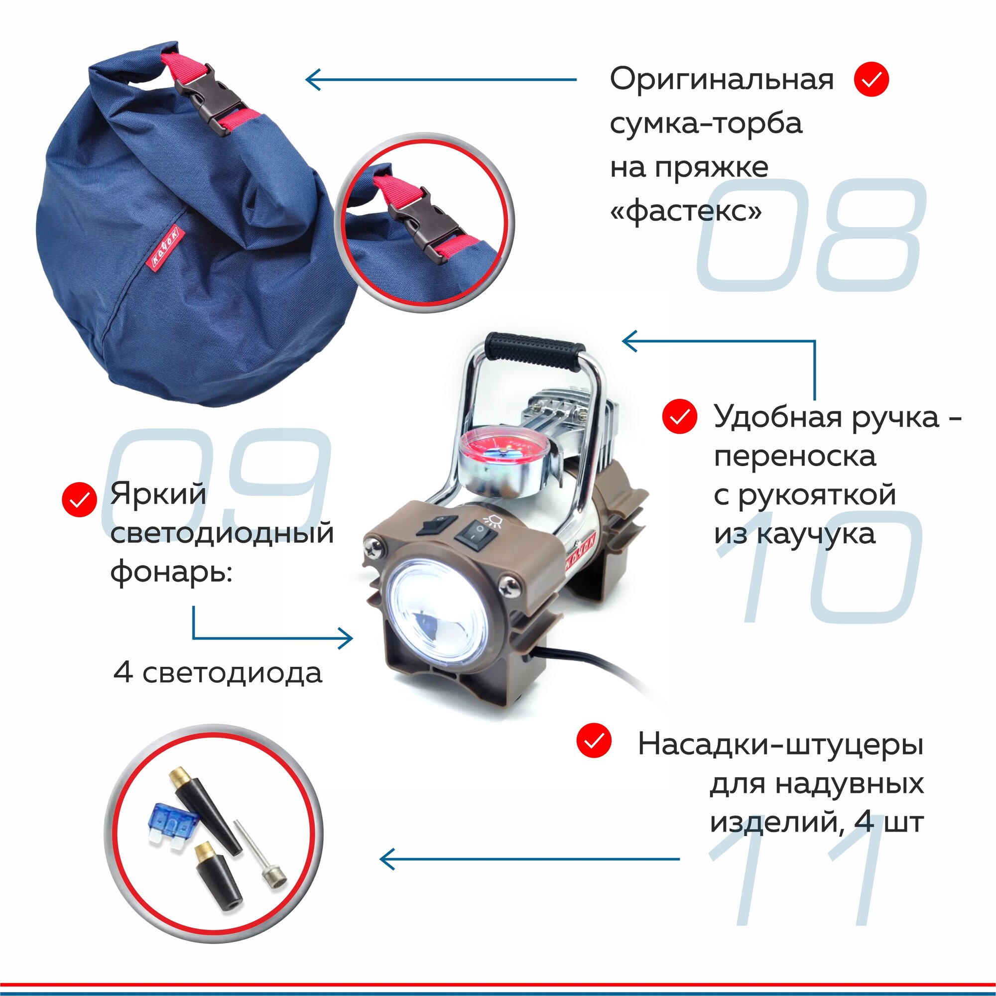 Компрессор Автомобильный С Светодиодным Фонарем 4 Led 10 Атм. 40 Л/Мин. 12 А. 3 М. 12 В. Сумка К90led качок арт. K90LED