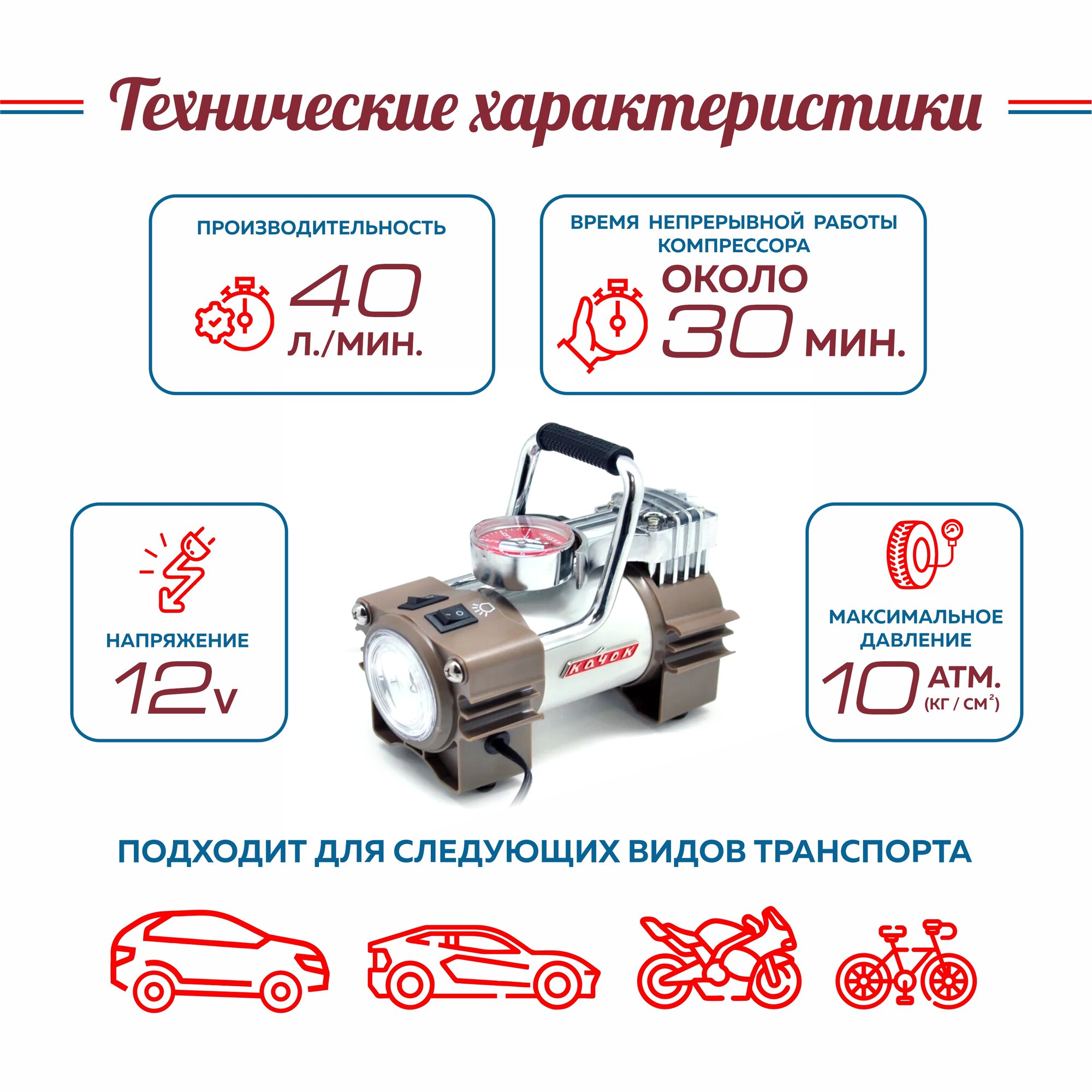 Компрессор Автомобильный С Светодиодным Фонарем 4 Led 10 Атм. 40 Л/Мин. 12 А. 3 М. 12 В. Сумка К90led Качок K90led качок арт....