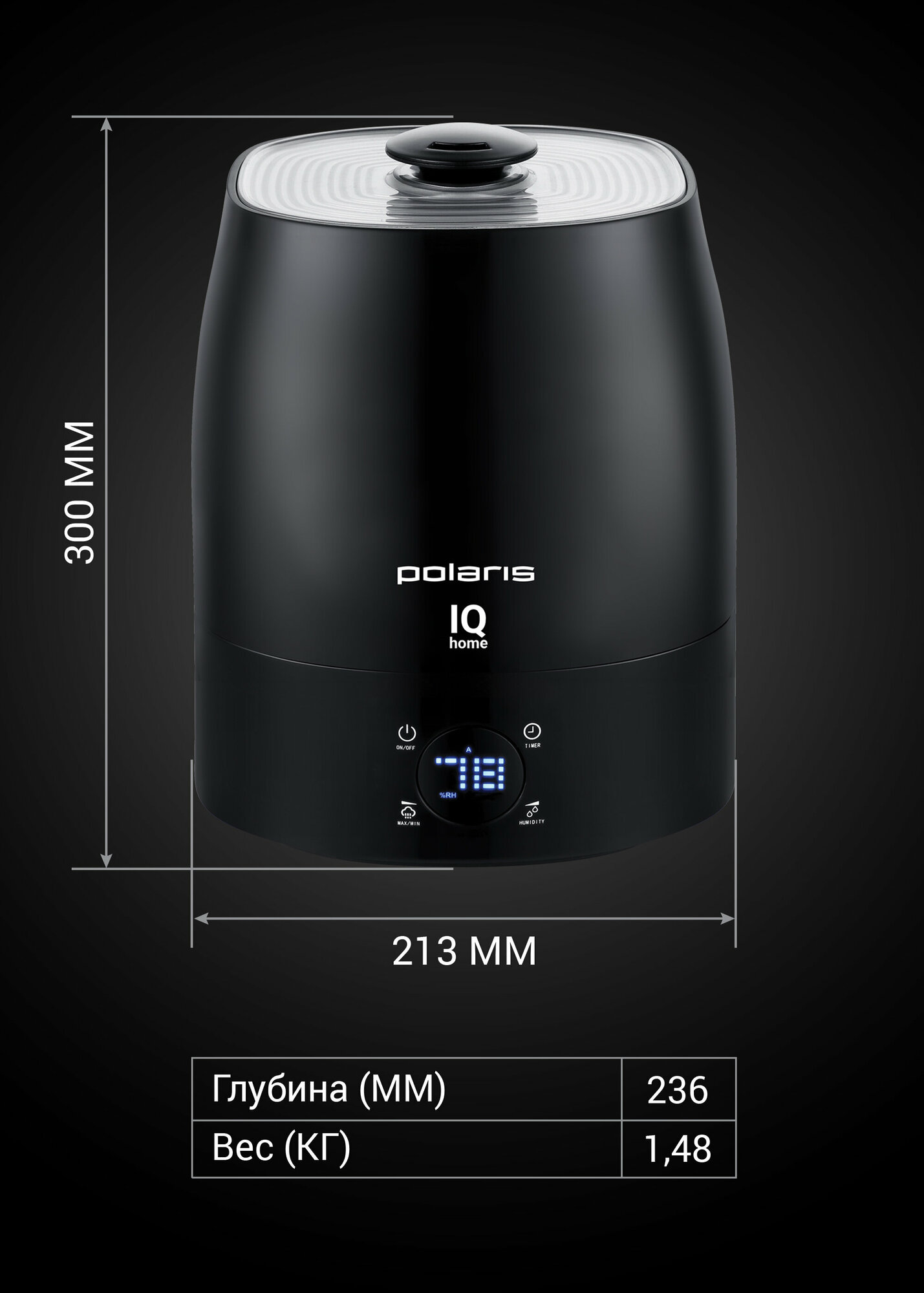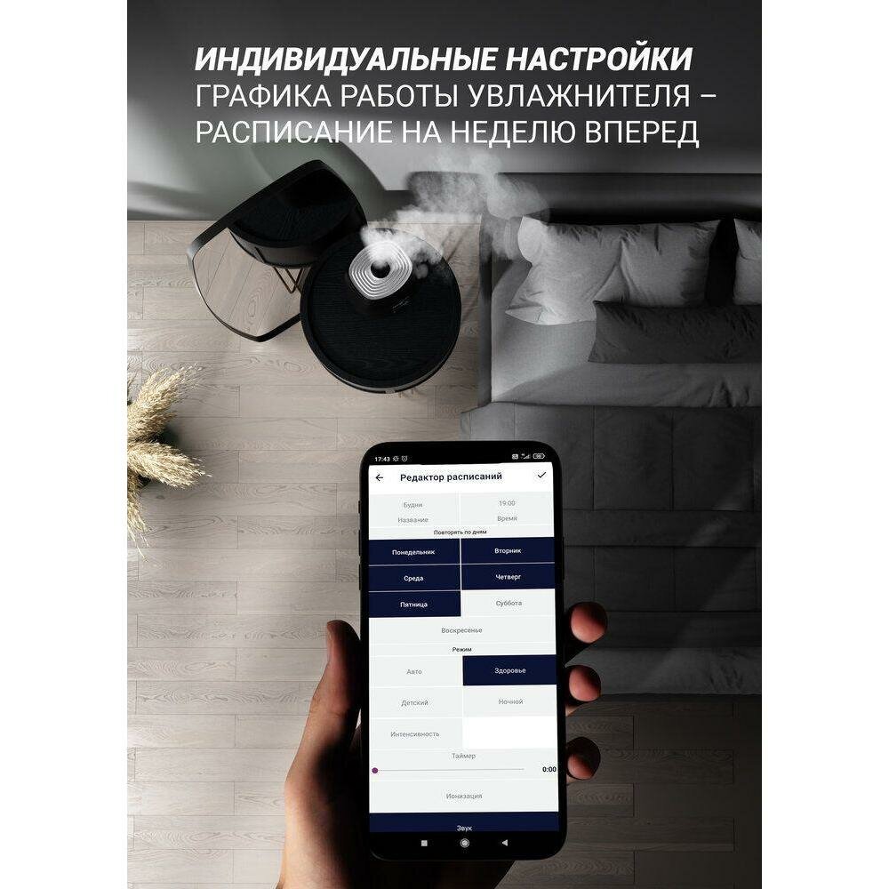 Увлажнитель воздуха POLARIS PUH 1010 WiFi IQ Home, объем бака 5,5 л, 30 Вт, черный, 55511 /Квант продажи 1 ед./