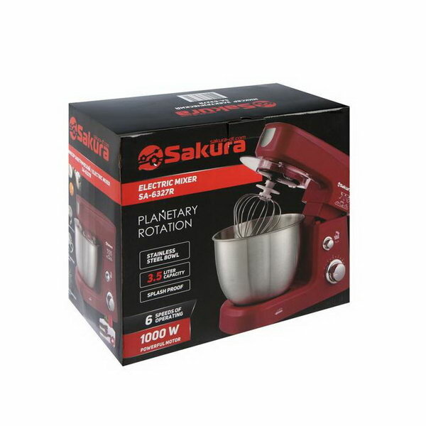 Миксер электрический Sakura SA-6327R планетарный 1000Вт 3,5л 6 скоростей