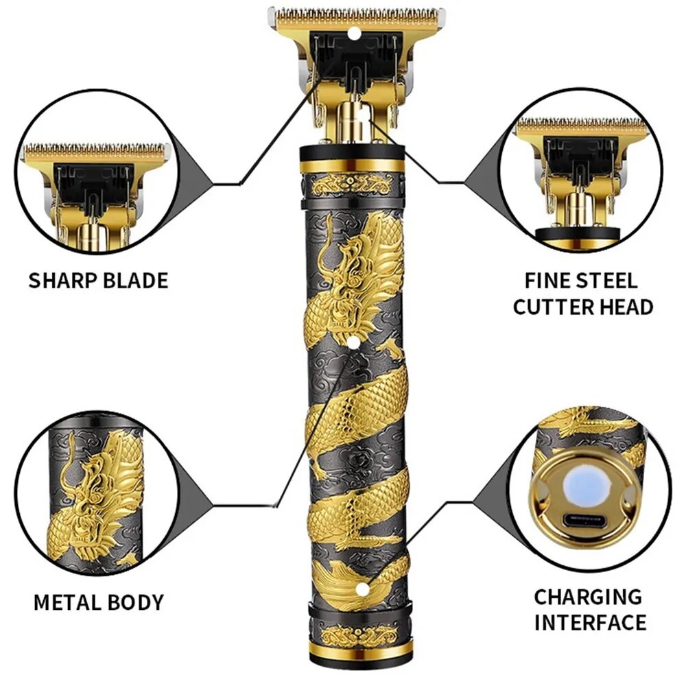Профессиональный триммер для стрижки волос и окантовки, дизайнерский / с узором дракона, Белый - золотистый интересное: