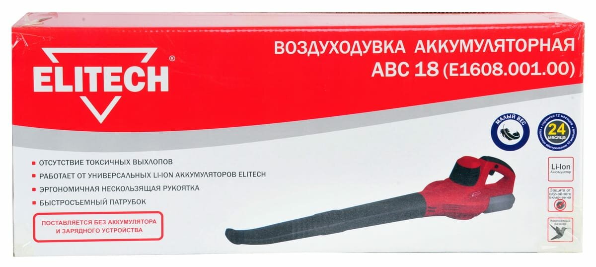 Ниже Вы можете прочитать отзывы на Воздуходувка ELITECH аккумуляторная АВС 18 (E1608.001.00), ознакомится с подробными характеристиками, посмотреть интересные обзоры и фотографии на Воздуходувка ELITECH аккумуляторная АВС 18 (E1608.001.00).