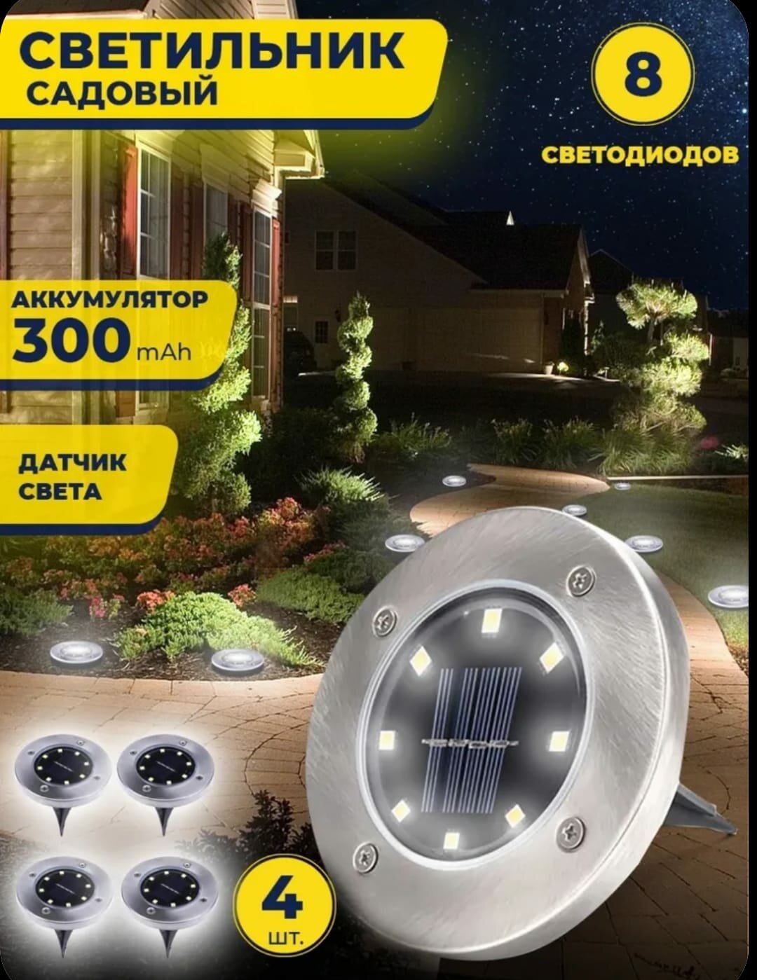 Водонепроницаемые садовые светильники (4 шт.) на солнечных батареях Solar Pathway Lights, 4 LED интересное: