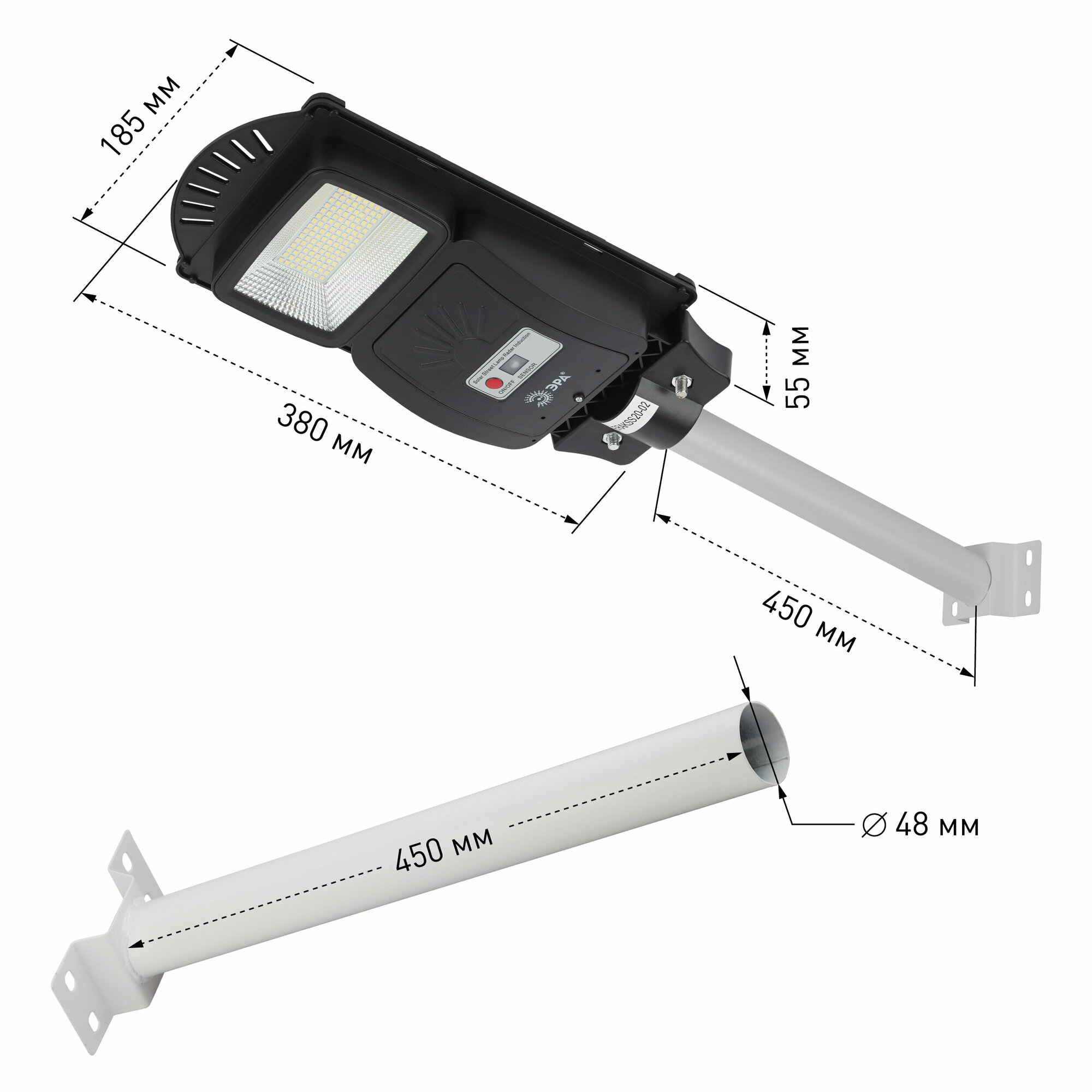 Светильник консольный 20Вт 400лм 5000К IP65 на солнечной батарее SMD с кронштейном с датчиком движения ПДУ | код. Б0046798 | Эра ( 1шт. )