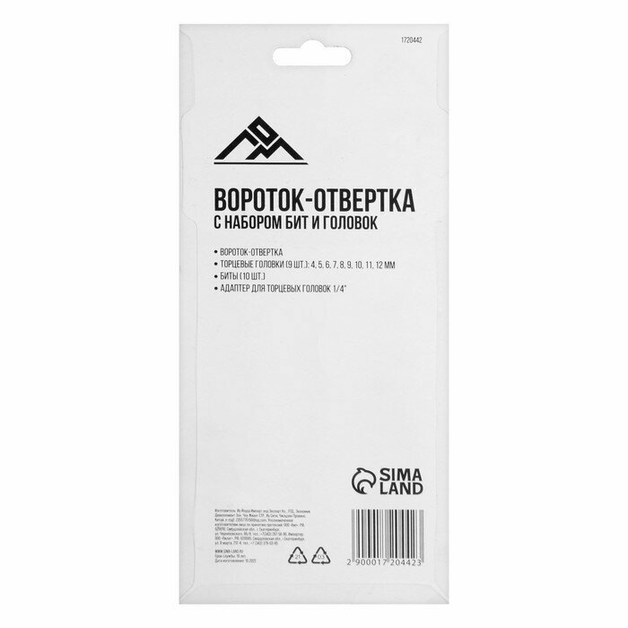 Отвертка с набором бит и головок ЛОМ, Т-образный держатель, 21 предмет, 1720442