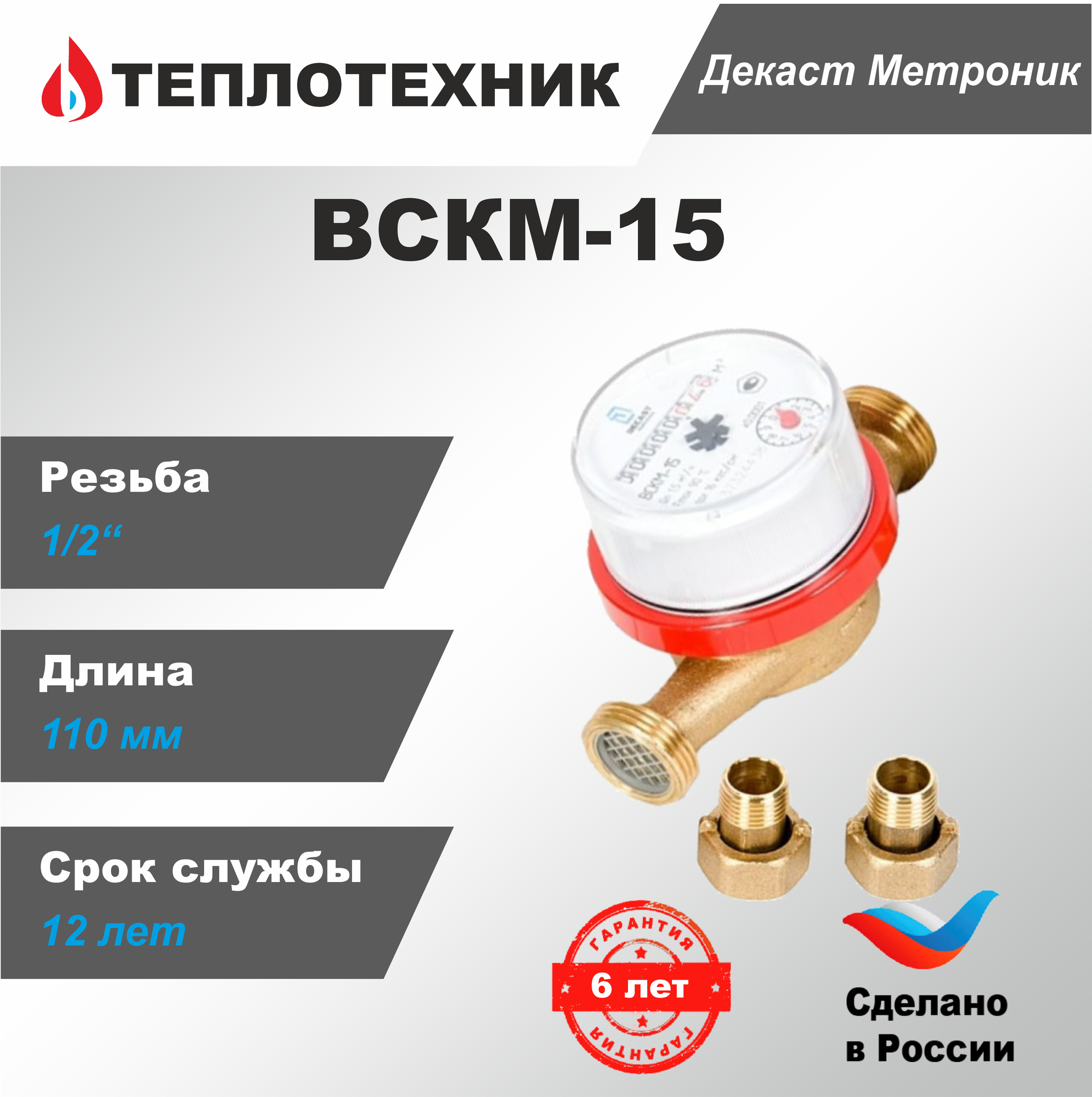Счетчик воды Декаст ВСКМ-15, 110мм, монтажный комплект