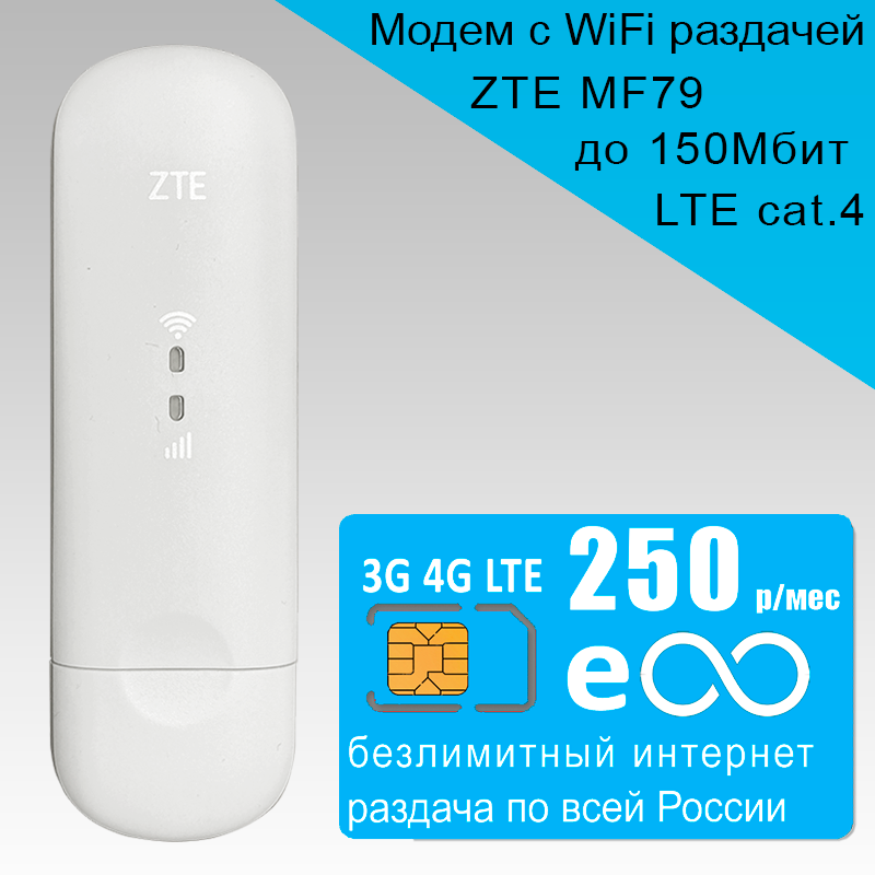 Купить Модем ZTE MF79U (RU) + сим карта Yota с безлимитным интернетом за 250р/мес.