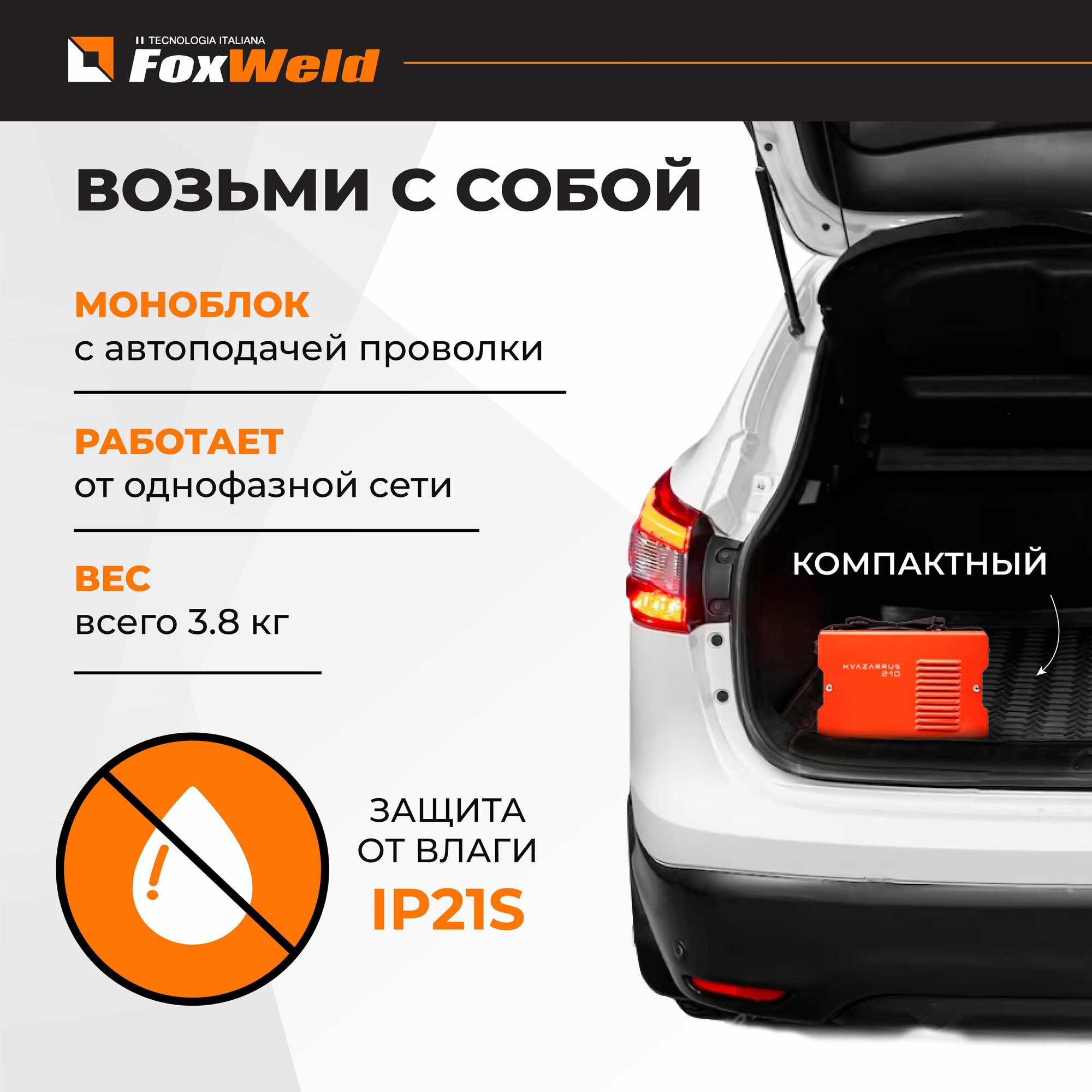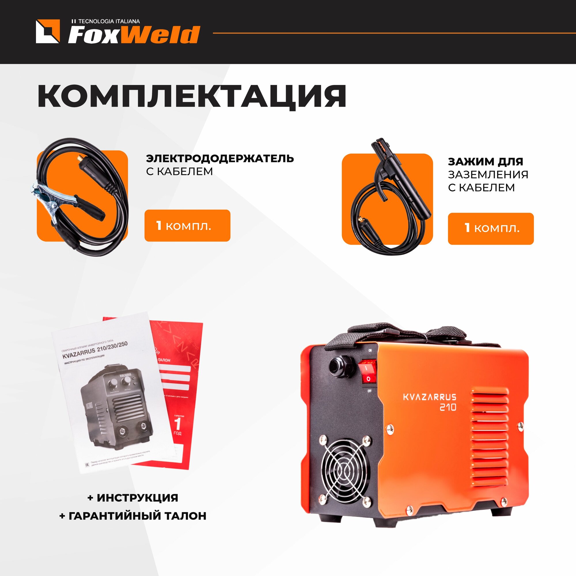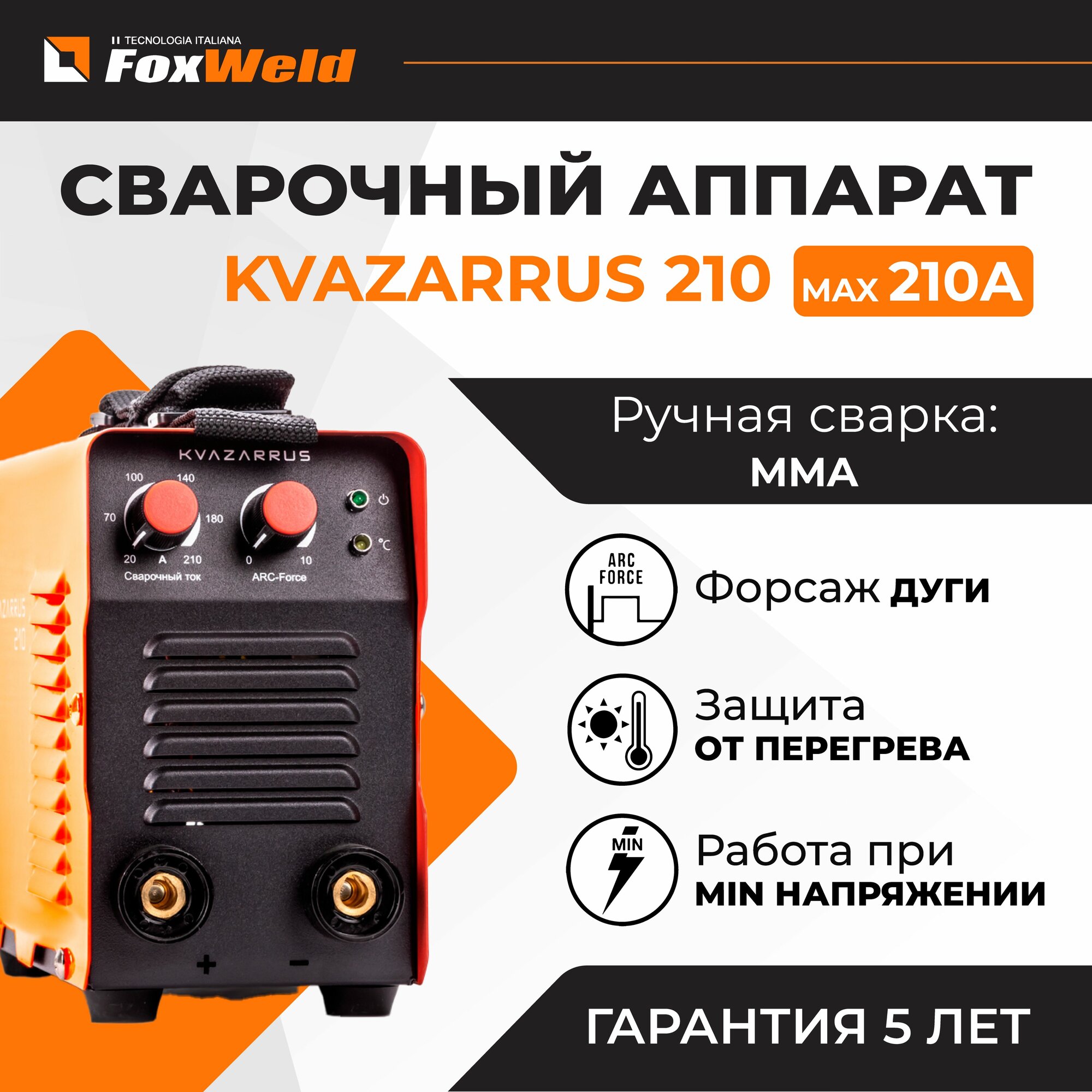 Foxweld Сварочный аппарат KVAZARRUS 210 варит электродом, легкий поджиг, ручная дуговая сварка, Горячий старт, Форсаж дуги, Антизалипание электрода