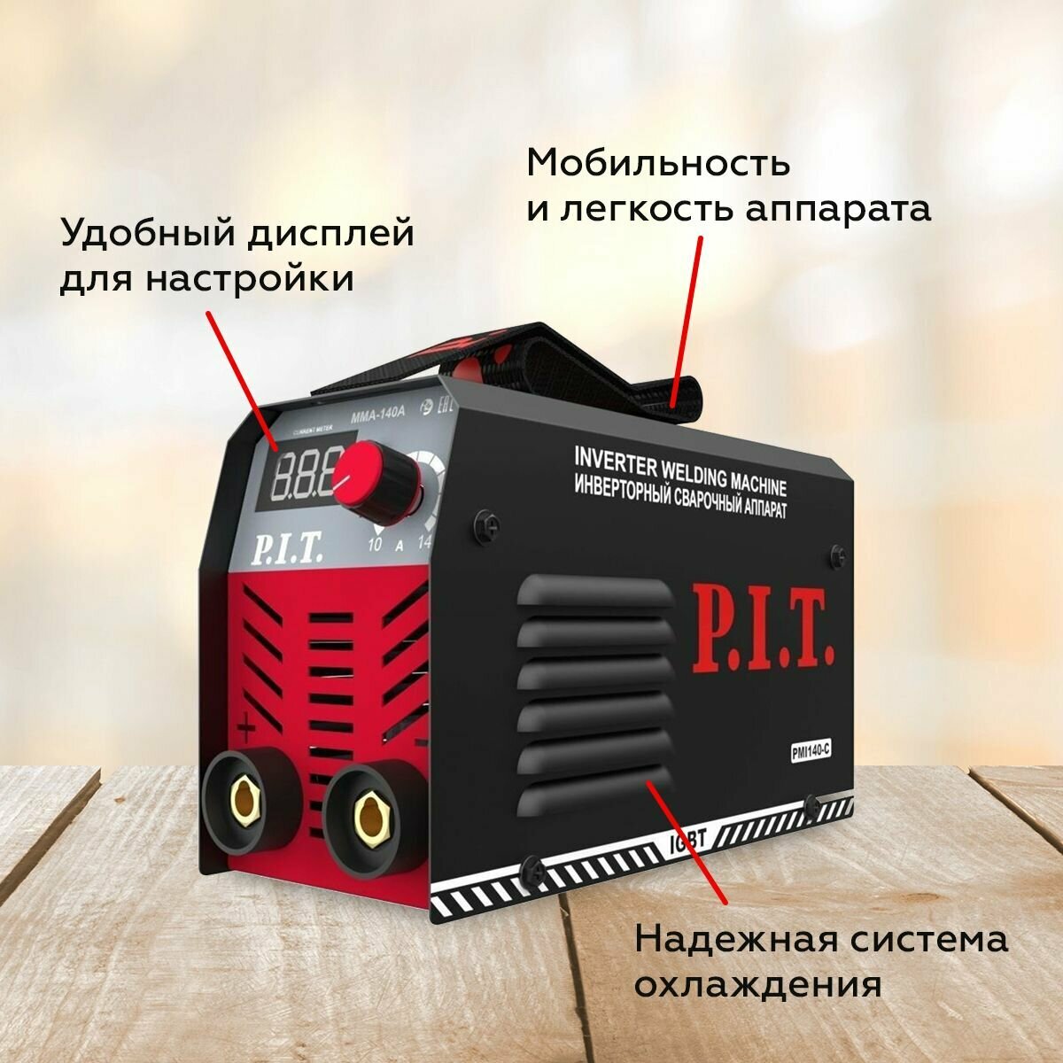 Сварочный инвертор PMI140-С IGBT (140А,ПВ-60,1,6-3.2 мм,4квт, от пониж.тока 190,гор старт) P.I.T