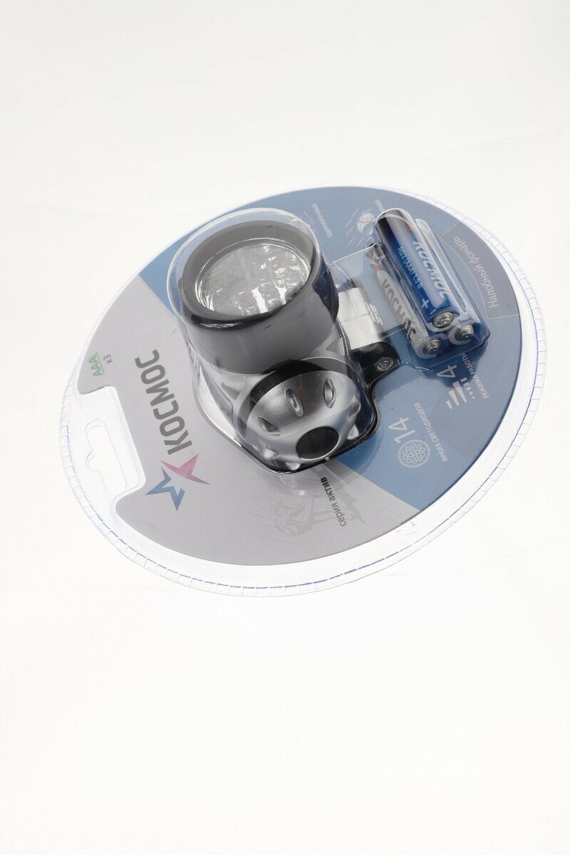 Фонарь налобный Космос H14LED (3xR03 в компл.) 14LED (160lm), серебр./пласт, 3 реж.ярк.+1 миг.реж, BL