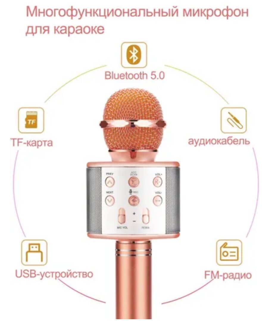 Микрофон караоке беспроводной,с подсветкой,. YS (розовое золото) интересное: