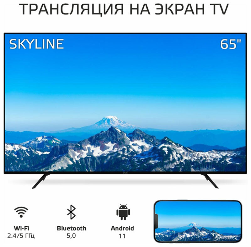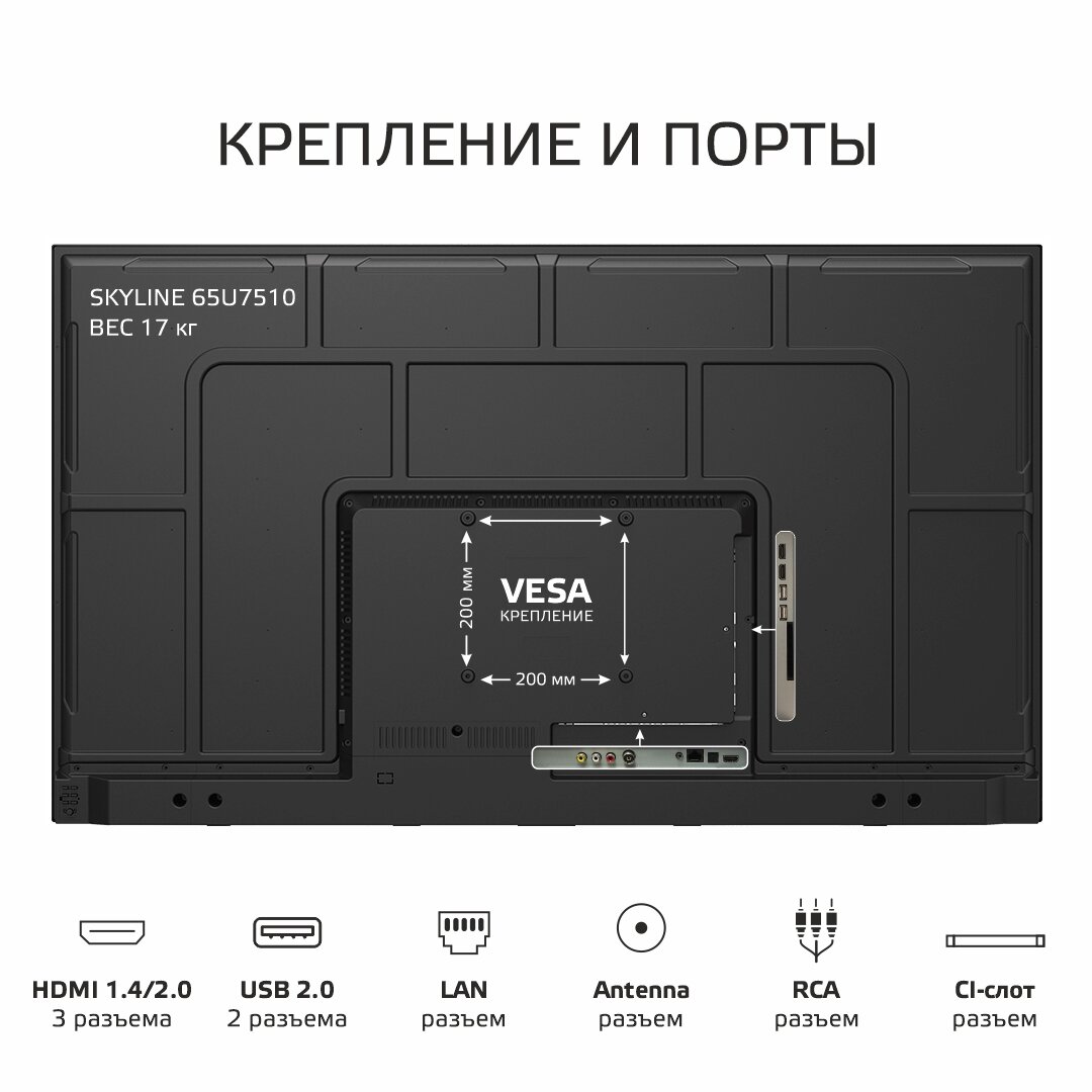 Телевизор 65 дюймов SKYLINE 65U7510, SMART TV, 4K UHD, черный
