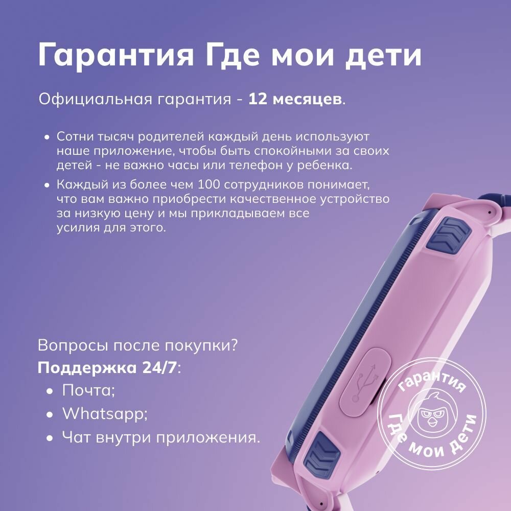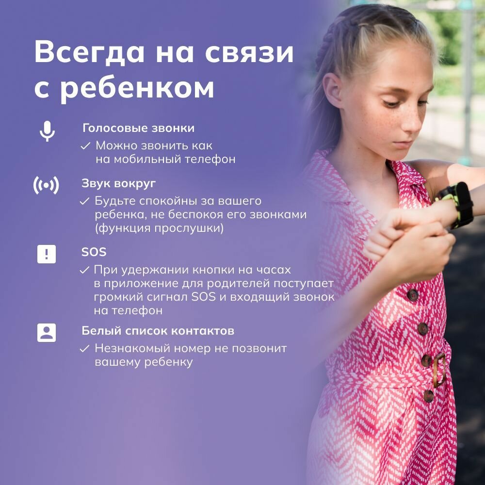 | Плюсы: | Покупали именно для связи с ребёнком. Удобно звонить с часов, функция «звук вокруг ребёнка» |