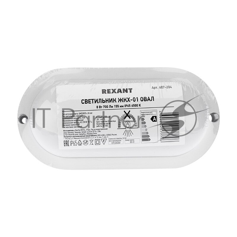 Rexant Светильник светодиодный пылевлагозащищенный ЖКХ-01 овал 8 Вт 155 мм IP65 6500 K 607-204 .