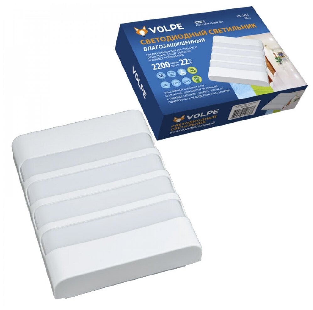 Светильник светодиодный влагозащищенный Volpe, 22 Вт, 2200 Лм, IP65, 200x160x58 мм, белый