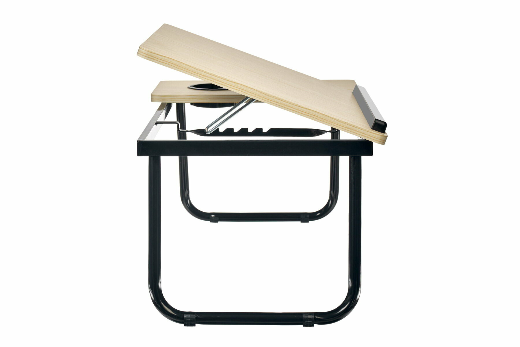 Стол складной с подъёмной крышкой и подстаканником «вита», 55x32x25см, мдф, металл, св.дерево, черный