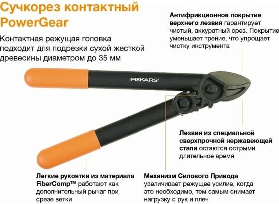 Сучкорез контактный Fiskars PowerGear L71 малый черный/оранжевый (1001556)
